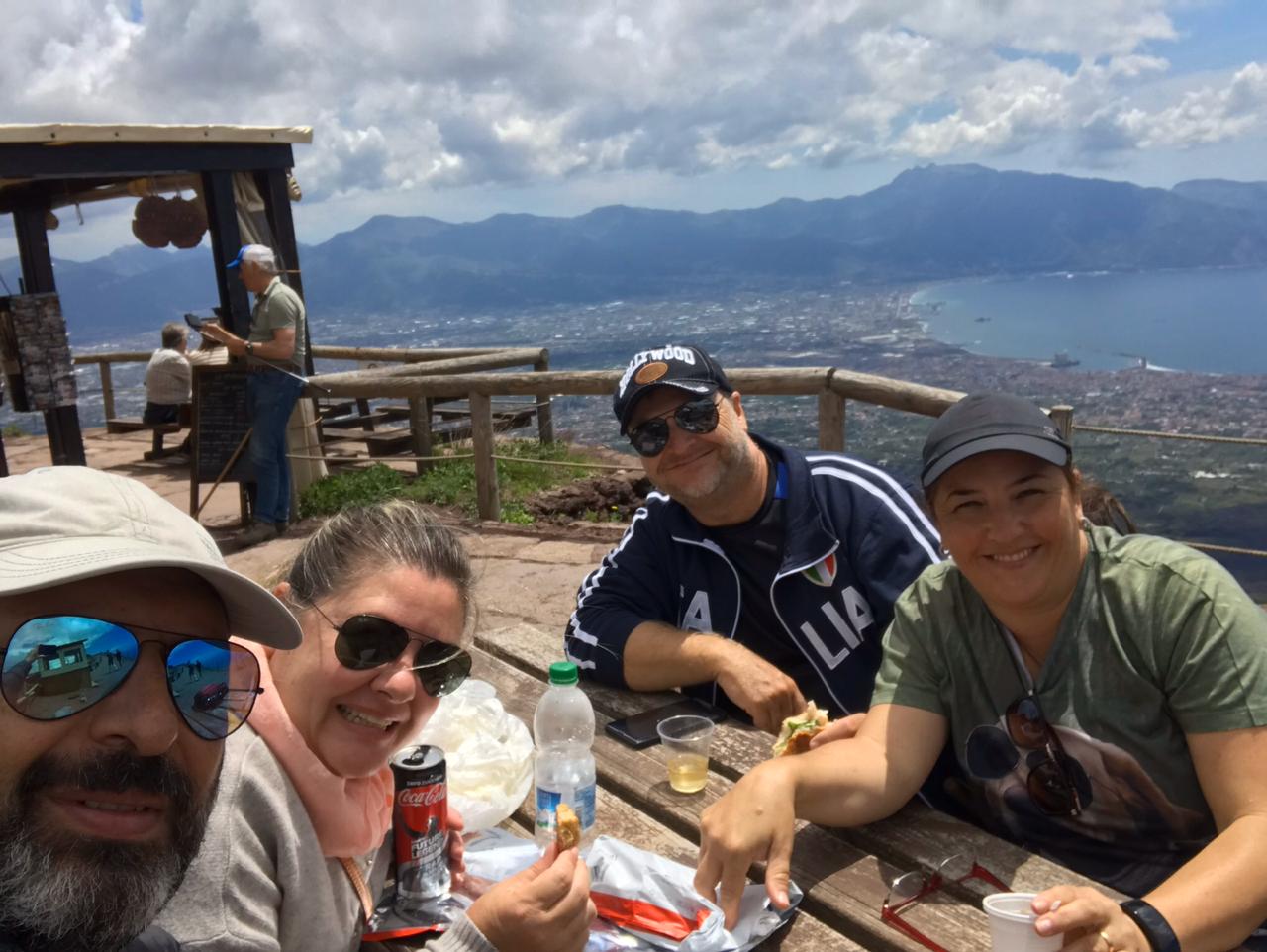 Como estávamos de carro, aproveitamos o dia e fomos até o Vesúvio, não estava nos planos, mas já que estamos viajando quebrar a planejamento faz parte certo, assim, fomos conhecer o Vulcão que não esta tão bem adormecido assim, pois tinha bastante fumacinha saindo dele.