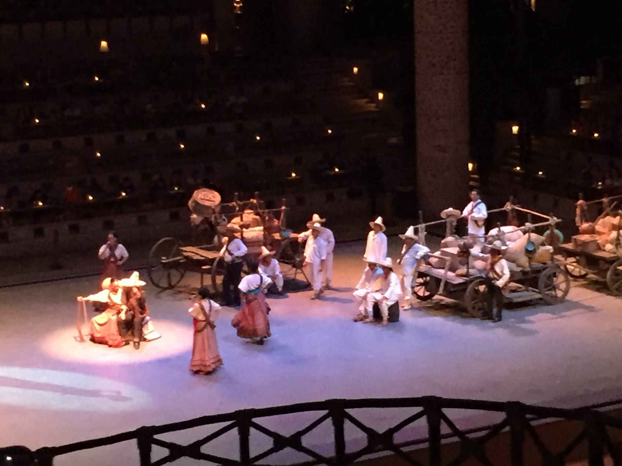 E, enfim, inicio do encerramento, um show magnifico, com mais de 300 atores, que por meio da dança e musica mostram um pouco da historia do México, para este espetáculo o bom é chegar cedo pois fica lotado rapidamente.